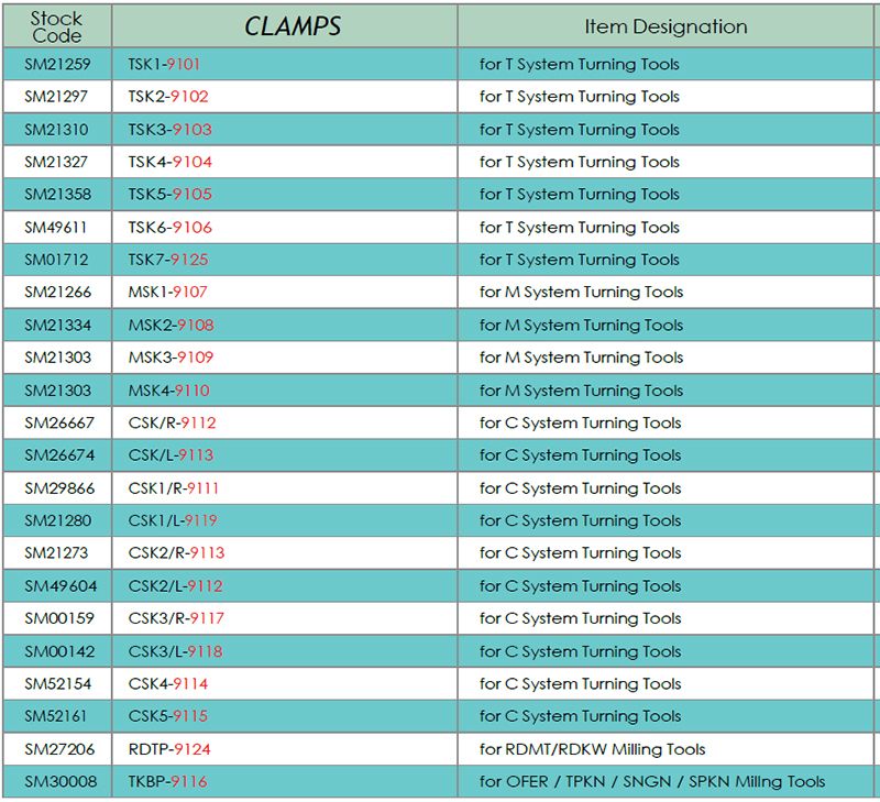 | Тип инструмента | Прижим для фрезерных державок OFER / TPKN / SNGN / SPKN типа |
